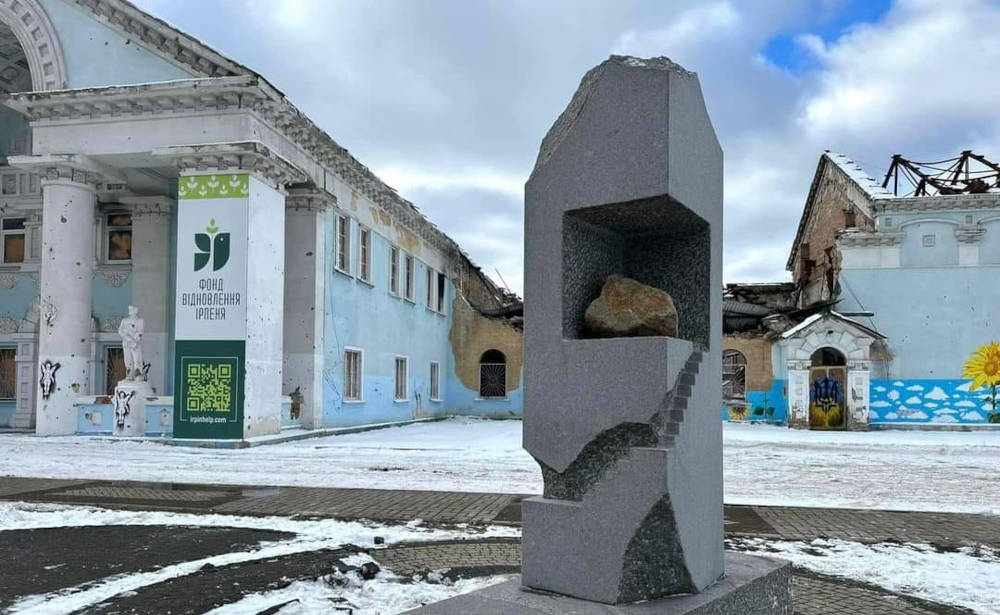 ウクライナ文化情報政策省HPより ![]() <記事の翻訳> 日本人アーティスト八木ヨシオの彫刻「僧侶のための瞑想空間」がイルピンで発表 1月16日、ロシア軍によって破壊されたイルピン中央文化会館前にある日本人芸術家八木ヨシオによる彫刻「僧侶のための瞑想の空間」の除幕式が行われた。 この彫刻は、2019 年にカニウ国際彫刻シンポジウムの一環として制作されました。 この作品は物語的であり、瞑想のために岩の階段を登って隠者の部屋に向かう修道士の道を象徴しています。 「この戦争に抵抗するよう芸術の力で人々を励まそうとする多大な努力に、私は非常に感銘を受けています。 八木さんの作品には階段を登っていく感覚があります。 イルピンの住民がこの作品を見て、復興への「階段を登って」くれることを願っています」と駐ウクライナ日本大使の石原二等書記官は語った。 同時に、現代美術キュレーターのコスティアンティン・ドロシェンコ氏は、日本人作家による彫刻の設置がイルピンをウクライナの現代美術の中心地に変える始まりであると指摘した。 イルピン市の副市長ユリヤ・ウスティッチ氏は、同市を訪れる代表団の中で文化センターが最も訪問される場所であると強調した。 彼女は、イルピンで展開される現代美術が地元の文化インフラの再構築を促すのにも役立つことを期待していると述べた。 「僧侶のための瞑想空間」は、リヴィウのストルイ公園の「彫刻ルート」やカニウ国際彫刻シンポジウムなどの公共空間のプロジェクトで知られる芸術協会「チェルボーン・チョルネ」のコレクションから提供された。 イルピン市長オレクサンドル・マルクシン氏、副市長ユリヤ・ウスティッチ氏、 市議会議員オレクサンドル・パシチンスキー氏のfacebookより