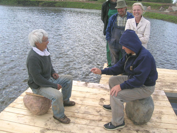 氷河で削られたいくつもの湖と森を背景に、石、木、水、等の 素材を用いて大いなる自然へのかかわりを試みる、制作約一ヶ月の 多国籍作家集団の表現の結果を報告します。 ![]() 「渡れない浮橋」 松材・玉石(2.6 m ×40m) リエクスツ湖、ガイジンカルンス、八木ヨシオ ![]() 水上ウォ-ク「八ツ橋」と黒のポート。 八木ヨシオ ![]() RIDO オーナー グーナスとのチェスの水上パフォーマンス。 ![]() Inese 造園設計家 全域に渡り植生・水質等にアドバイス。 ![]() Pauls 作品、湖から立ち上がる生命「 Infinity 」 ![]() Ian 「オンドル式ベンチ」 林と湖とイアン。