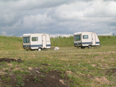 ![]() トレーラーハウスの 作家事務所。 杜と湖・ガイジンカルンスの景観。