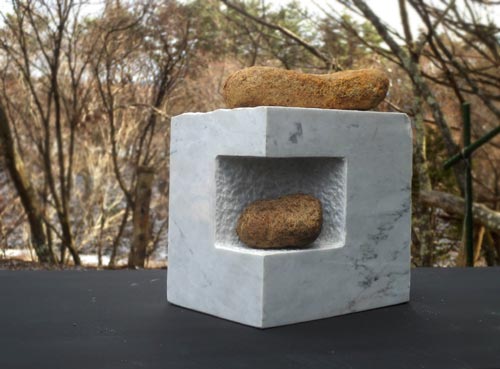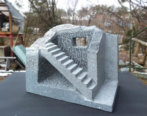 大理石の模型(20cm)をスタジオで制作、ある場所に設置してみる。